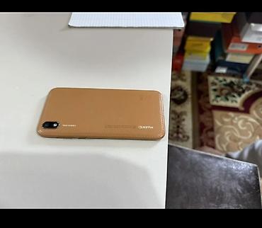Смартфон Huawei (серия Y) с каплевидным вырезом под фронтальную камеру и коричневой задней крышкой под кожу.