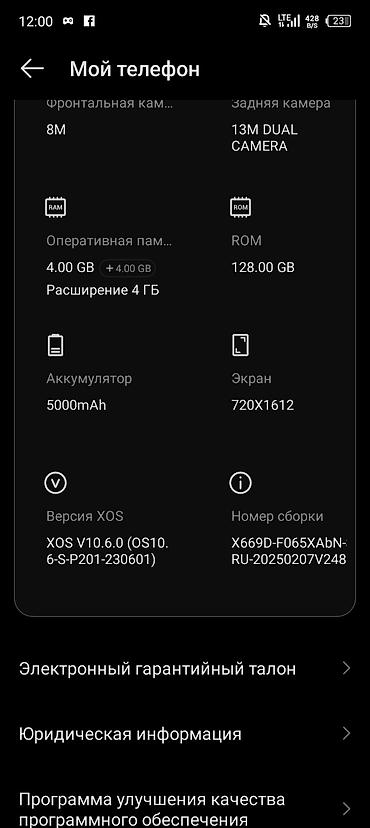 - Операционная система: Android 12, оболочка XOS V10.6.0