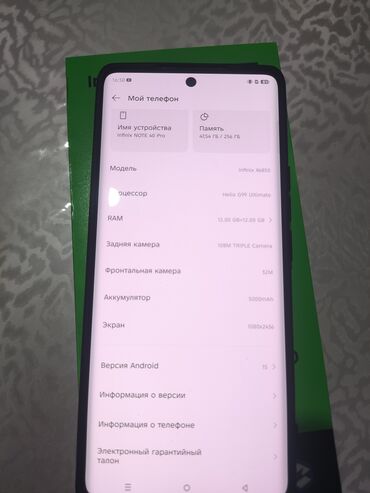 Infinix Note 40 Pro, Б/у, 256 ГБ, цвет - Голубой, В рассрочку, 2 SIM