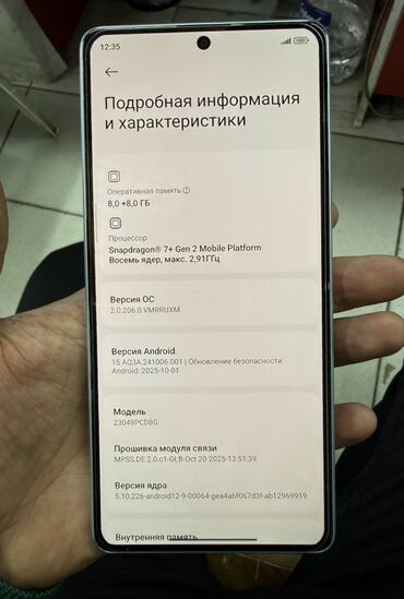 - ПО: версия ОС 2.0.206.0.VMRRUXM; Android 15 (с обновлением безопасности от 2025-10-01).