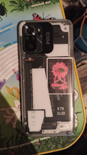 - Корпус с прозрачной задней крышкой/бампером, видны внутренние элементы; блок камер с фирменной вставкой POCO.
