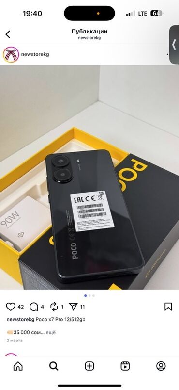Poco X7 Pro 🔥 📍Память - 12/512гб 📍Статус - Б/У 📍Состояние - Идеальное 🔥 💸Цена - 24000 сом 📍Отправляем по всем регионам КР🇰🇬 📍Trade In- Обмен есть 🤝 Для подробной информации ; 📞 (WhatsApp)