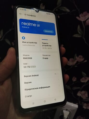 - Корпус темно‑серого цвета, матовая задняя панель с логотипом realme.