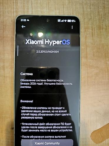 - Установлена Xiaomi HyperOS (версия 2.0.209.0.VNGMIXM), доступно обновление системы безопасности.