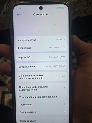 - Модель: Redmi 13 (указано в настройках “О телефоне”)