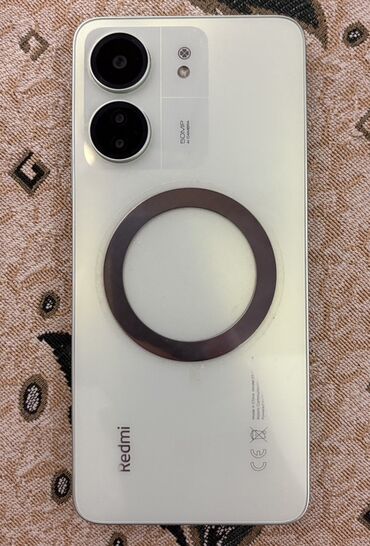 Смартфон Redmi13C с двумя основными камерами и кольцевым магнитным модулем на задней панели для магнитных аксессуаров.