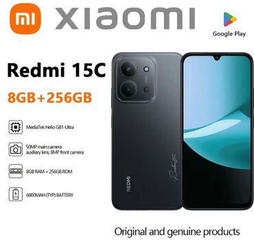 Redmi, Redmi 15C, 256 ГБ, цвет - Черный, 2 SIM