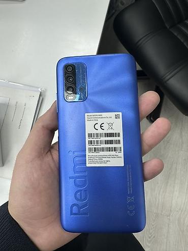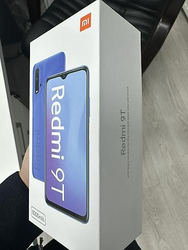 Смартфон Redmi 9T в синем цвете, оснащенный мощным аккумулятором на 5000 мАч, что обеспечивает длительное время работы без подзарядки. Устройство имеет многомодульную камеру для качественных снимков. Модель M2010J19SG от Xiaomi.
