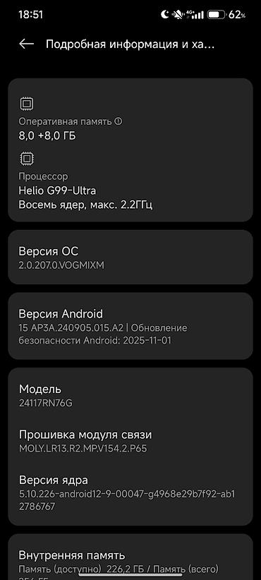 Смартфон Xiaomi Redmi 15 - ОС: Xiaomi HyperOS 3.0.1.0 (Android 16, сборка 16 VBP2A.250605.031.A3) - Память: 128 ГБ встроенной, доступно около 55 ГБ - Экран: безрамочный с вырезом по центру, поддер...