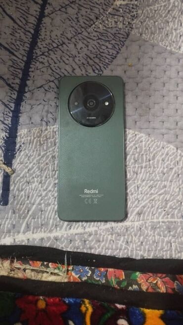 Смартфон Redmi (зелёный цвет, задняя крышка под кожу), серия Note/Redmi с круглым модулем камеры.