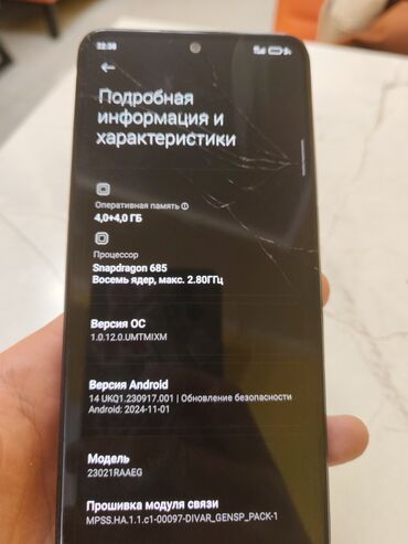 - Экран с центральным вырезом под фронтальную камеру; на дисплее виден рабочий интерфейс, датчики приближения/освещения и индикаторы сети/заряда.