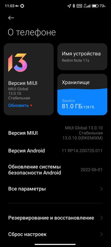 - Память: 128 ГБ (занято ~81 ГБ на скриншоте)