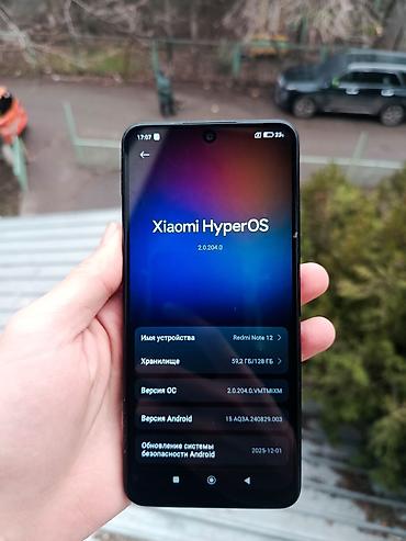 Смартфон Redmi Note 12, память 128 ГБ Установлена система Xiaomi HyperOS версии 2.0.204.0 на базе Android 15.