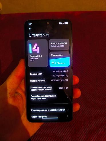 - Меню «О телефоне» подтверждает модель Redmi Note 12 5G и версии ПО