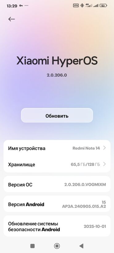 - ОС: Xiaomi HyperOS 2.0.206.0 (на базе Android 15).