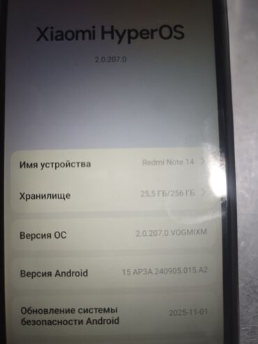 - Операционная система: Xiaomi HyperOS 2.0.207.0 на базе Android 15 (AR3A.240905.015.A2), указано обновление системы безопасности до 2025-11-01.