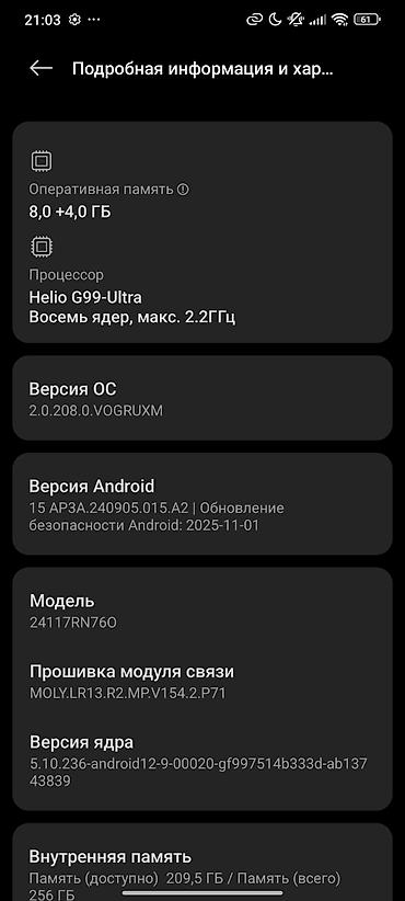 - ОС: Xiaomi HyperOS 2.0.208.0 на базе Android 15; установлен патч безопасности Android от 01.11.2025.