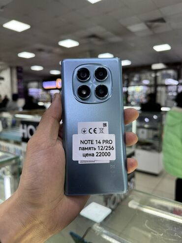 - Наклейка на корпусе: “NOTE 14 PRO, память 12/256, цена 22000”.