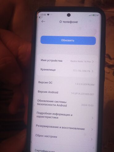 - Раздел «О телефоне» доступен; функция «Обновить»