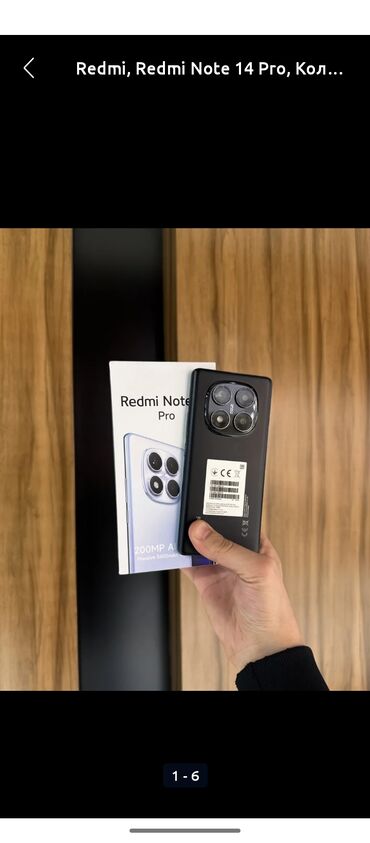 - Комплект: смартфон Redmi Note 14 Pro и фирменная коробка (на коробке указаны 200MP AI и 5500mAh).