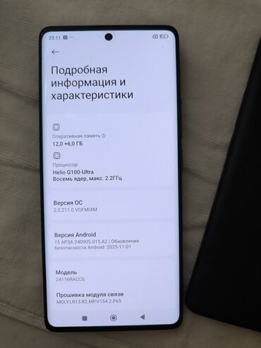 - Android: версия 15 (с обновлением безопасности до 2025‑11‑01).