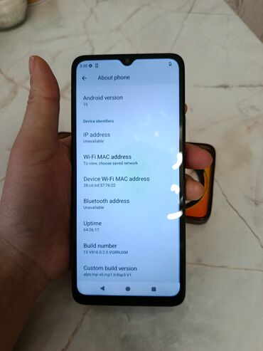 - ПО: установлен Android 15 (на экране «О телефоне» видно версию 15, номер сборки 15 V816.0.2.0.VGRRUXM; кастомная сборка alps-mp-v0.mp1.tc8sp3-V1).