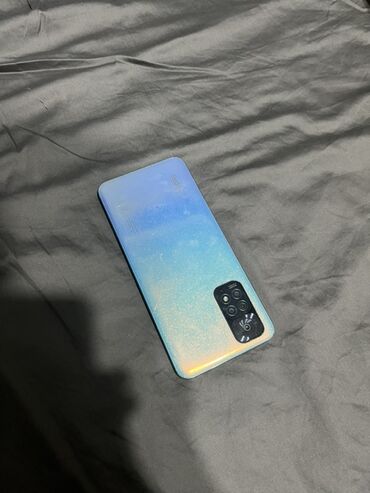 Смартфон Redmi, белый перламутровый корпус. На задней панели – сканер отпечатка и вертикальный модуль из 4 камер, основная камера 48 МП (маркировка “48MP AI CAMERA”), светодиодная вспышка. Характе...