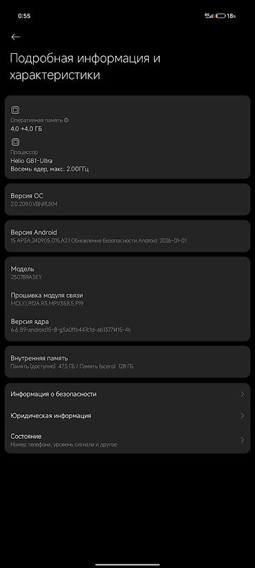 Смартфон Redmi 13 (модель 2404ARN45A) Основные характеристики: - Память: 6 ГБ ОЗУ + расширение до +2 ГБ, хранилище 128 ГБ. - Процессор: 8‑ядерный, максимальная частота 2.0 ГГц. - Экран: полноразме...