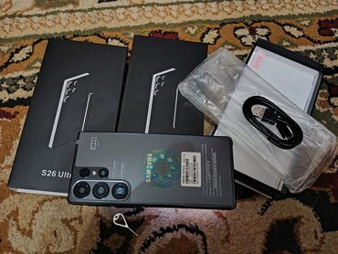 Смартфон S26 Ultra Комплектация по фото: коробка, смартфон, кабель
