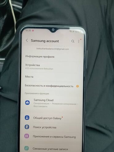 Смартфон Samsung Galaxy (линейка A, экран с каплевидным вырезом). Основные особенности: - Дисплей: безрамочный экран с каплевидным вырезом под фронтальную камеру, навигация жестами/кнопками. - ОС...