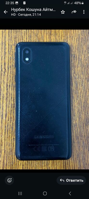 Подходит для звонков, мессенджеров, соцсетей, навигации и как запасной телефон. Цвет корпуса: чёрный. На экране установлено защитное стекло/плёнка. На задней панели — фирменная надпись Samsung и маркировка CE/EAC.