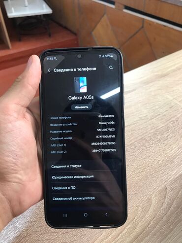 - На фото показаны реальные сведения об устройстве в меню «О телефоне» (Galaxy A05s, SM-A057F/DS, два IMEI).