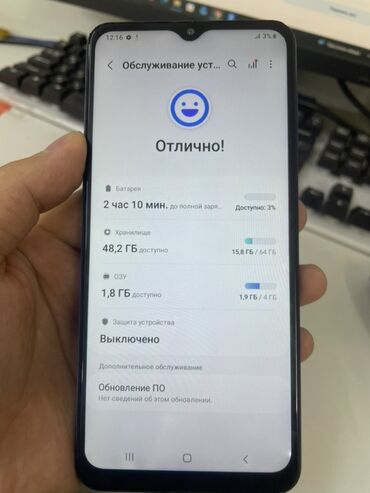 - На экране в “Обслуживании устройства” оценка состояния — “Отлично”