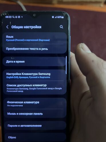 - Память и ПО: Android с фирменной оболочкой One UI; поддержка русского, английского, казахского и кыргызского языков (настроено в меню)