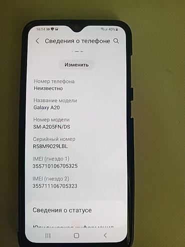 На экране и в меню видны текущие сведения о модели, серийный номер и IMEI. Телефон включается, демонстрация рабочего экрана на фото.