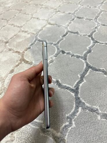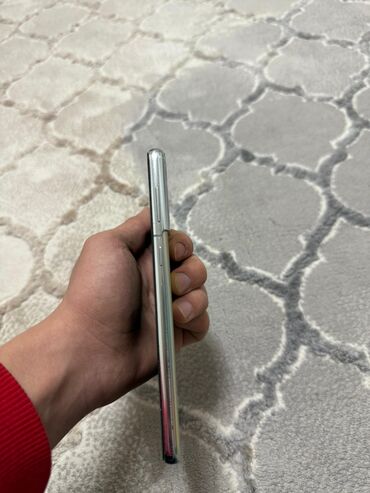 - Корпус: серебристо-радужная задняя панель, три камеры в вертикальном блоке, металлическая рамка.