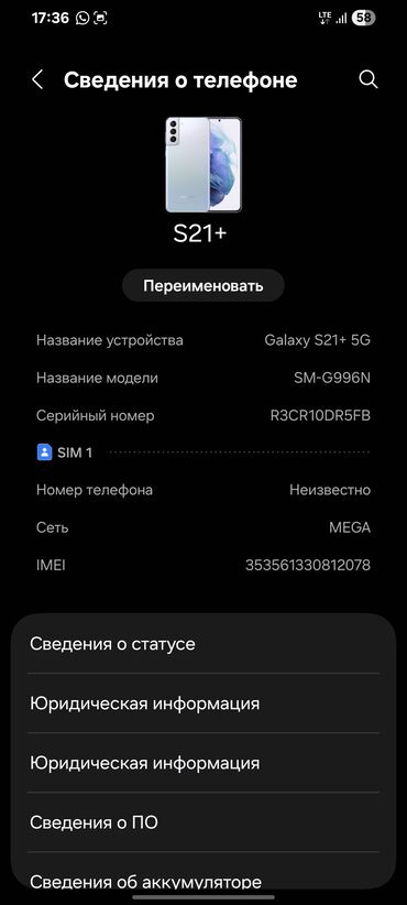Смартфон Samsung Galaxy S21 plus (серия S21)