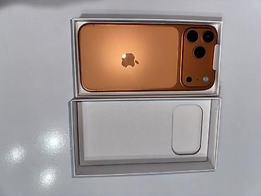Смартфон в стиле iPhone, оранжевого (медного) цвета, в фирменной коробке.