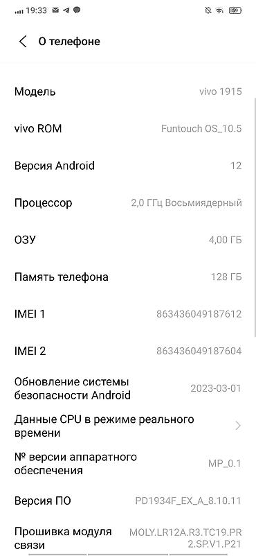 Смартфон vivo 1915 (серия Y) на Android 12 с оболочкой Funtouch OS 10.5.