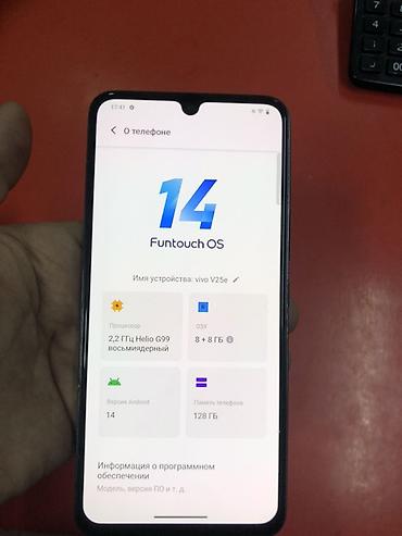 Vivo V25e — смартфон на Funtouch OS 14 (Android 14) с экраном с каплевидным вырезом и узкими рамками.
