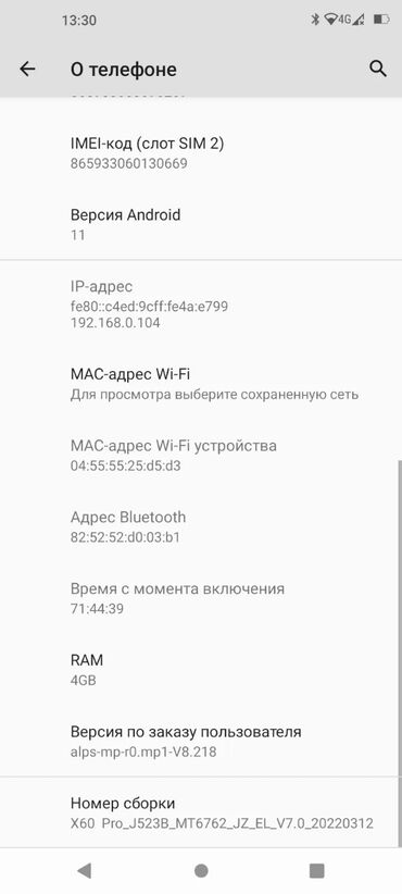 - Номер сборки: X60_Pro_J523B_MT6762_JZ_EL_V7.0_20220312