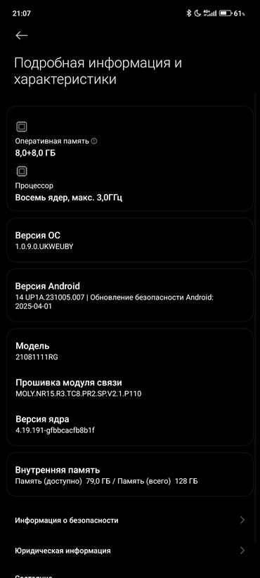 - ОС: HyperOS 1.0.9.0 на базе Android 14
