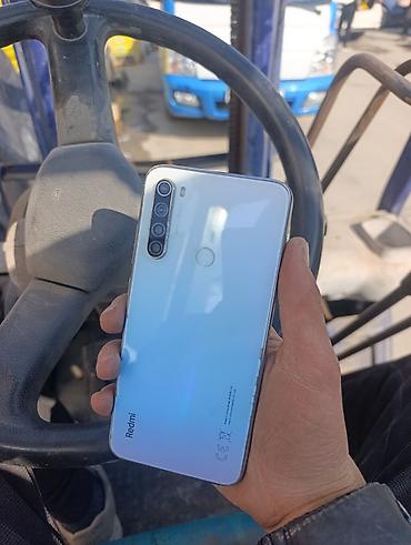 Смартфон Xiaomi Redmi (линейка Note, корпус белый/переливающийся). Экран с каплевидным вырезом под фронтальную камеру, диагональ около 6,3–. На задней панели — квадрокамера в вертикальном блоке + вспышка, сканер отпечатка пальца по центру. Корпус светлый, с градиентом, глянцевый.