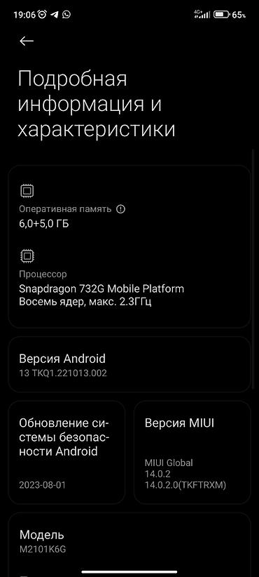 - Скриншоты с раздела «О телефоне» с подтверждением версии MIUI, Android, модели и объёма памяти.