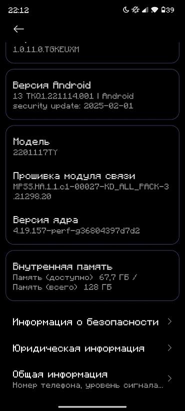 - ОС: Android 13 (версия сборки TKQ1.221114.001), прошивка MIUI 1.0.11.0 TGKEUXM.