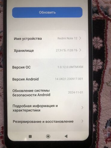 - ОС: Android 14 с прошивкой MIUI/HyperOS (версия ОС 1.0.12.0 UMTMIXM), актуальное обновление безопасности от 01.11.2024.