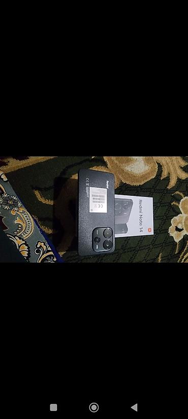 - Комплектация по фото: смартфон, коробка Redmi Note 14, защитный чехол, кабель/адаптер (видны в коробке), документация.