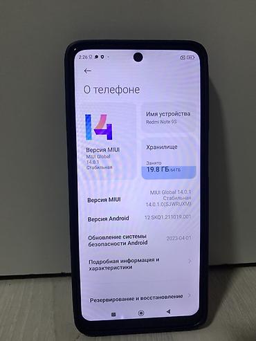 - На экране доступен раздел «О телефоне», подтверждающий модель Redmi Note 9S и версии ПО.