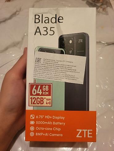 В комплекте: фирменная коробка ZTE Blade A35 (указаны характеристики).