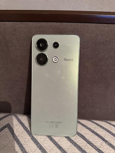1) Redmi (задняя крышка мятно-зелёного цвета). Тройной модуль камер: два крупных объектива + дополнительный датчик, светодиодная вспышка. На блоке камер обозначение 108MP — основная камера высокого разрешения для детализированных фото и видео. Плоская задняя панель со стройным профилем, надпись Redmi. Аккуратные скругления углов, матовая поверхность с легким сатиновым блеском.